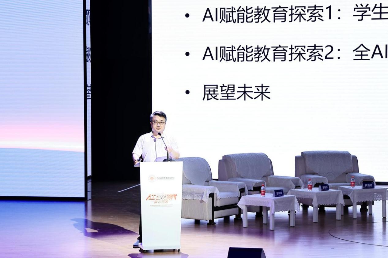 劉知遠作題為《生成式人工智能技術賦能教育的探索與展望》的分享。(成都市錦江區(qū)嘉祥外國語高級中學供圖)