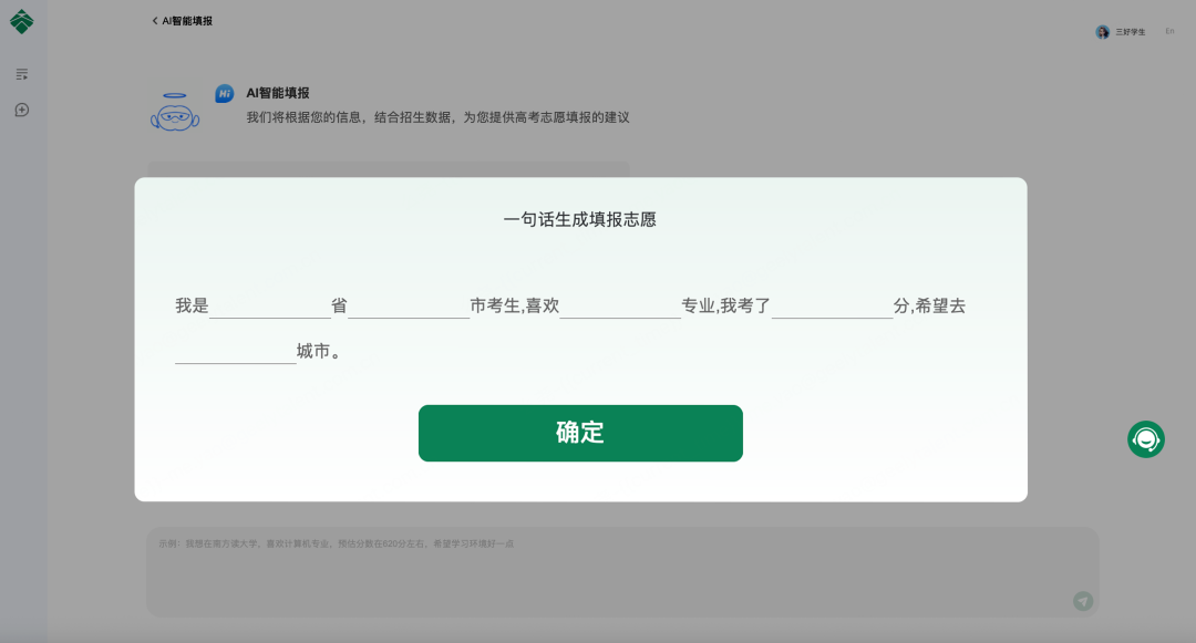 或進(jìn)入AI一句話生成模擬填報,系統(tǒng)會根據(jù)填寫信息進(jìn)行智能推薦