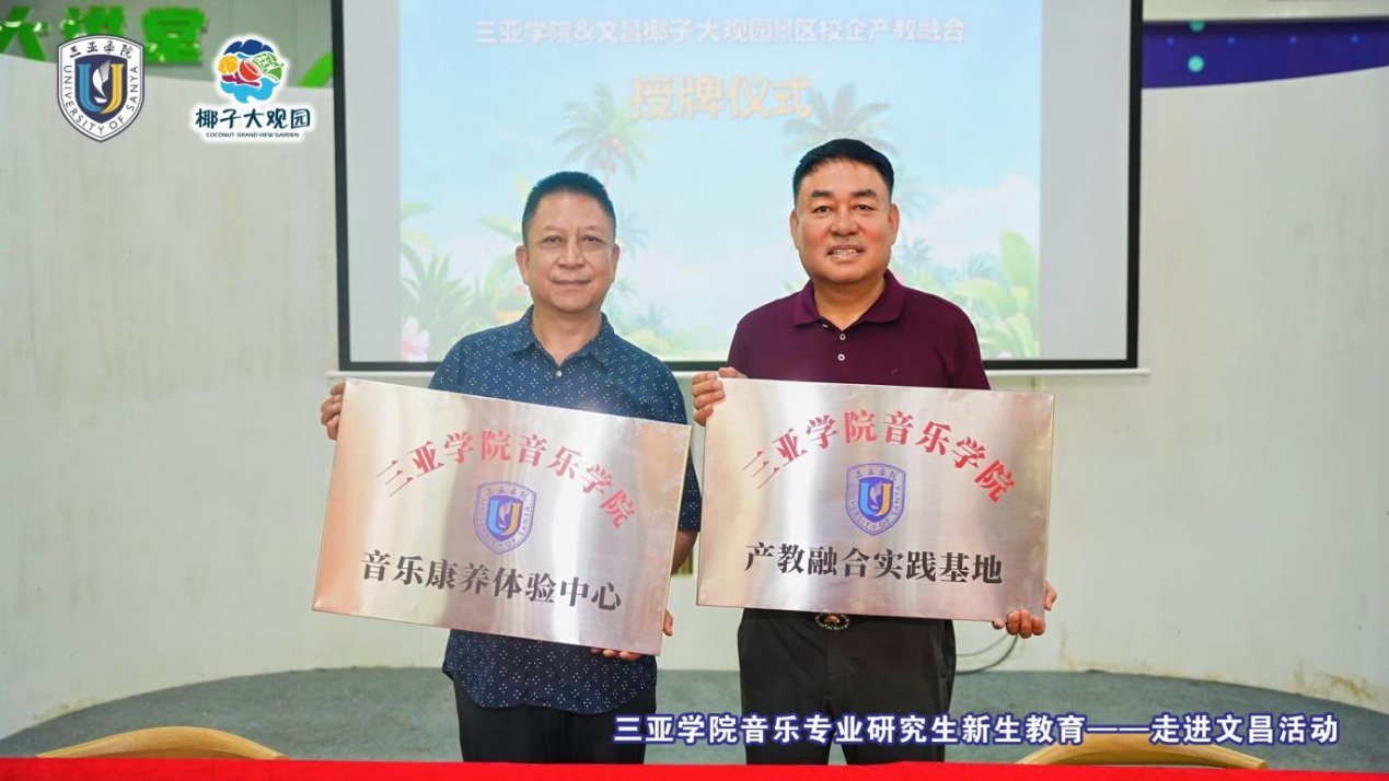活動當(dāng)天,雙方正式簽署《產(chǎn)教融合實踐基地合作協(xié)議》,并舉行“三亞學(xué)院音樂學(xué)院產(chǎn)教融合實踐基地”授牌儀式,未來將在音樂康養(yǎng)領(lǐng)域開展特色合作,共同探索“文旅+藝術(shù)+康養(yǎng)” 融合路徑,確立校企協(xié)同育人、資源平臺共享的合作新模式正式落地。