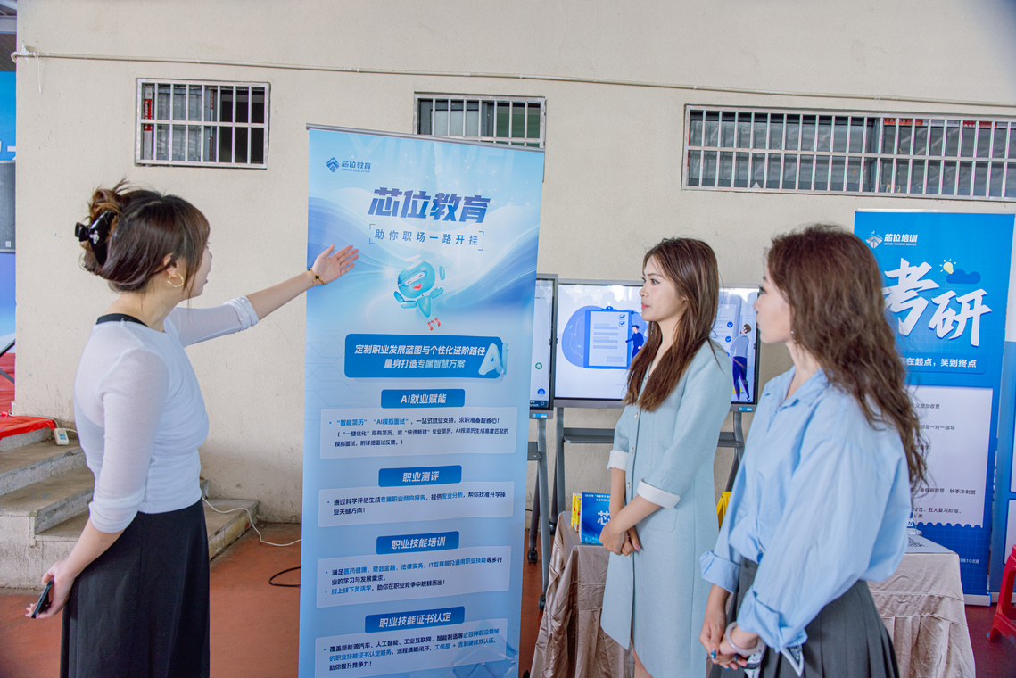 雙選會深度融合AI技術(shù),吉利教育集團(tuán)的芯位教育平臺通過“職業(yè)角色匹配度測試”,智能分析學(xué)生技能、傾向與崗位需求,結(jié)合行業(yè)趨勢生成個性化求職報告,精準(zhǔn)推薦適配崗位。雙選會現(xiàn)場設(shè)置AI就業(yè)交互機(jī),提供簡歷診斷、面試指導(dǎo)、崗位推薦等一體化自助服務(wù);智能聯(lián)播機(jī)提供24小時崗位宣傳、政策宣講、數(shù)字人滾動播報等功能,打造智慧求職新體驗。