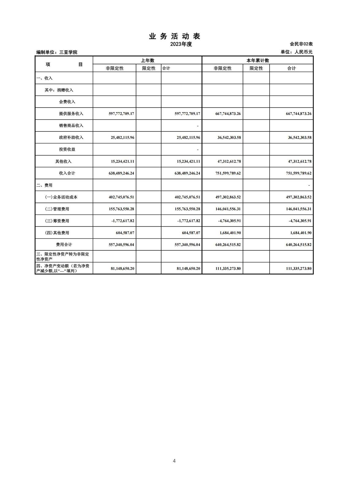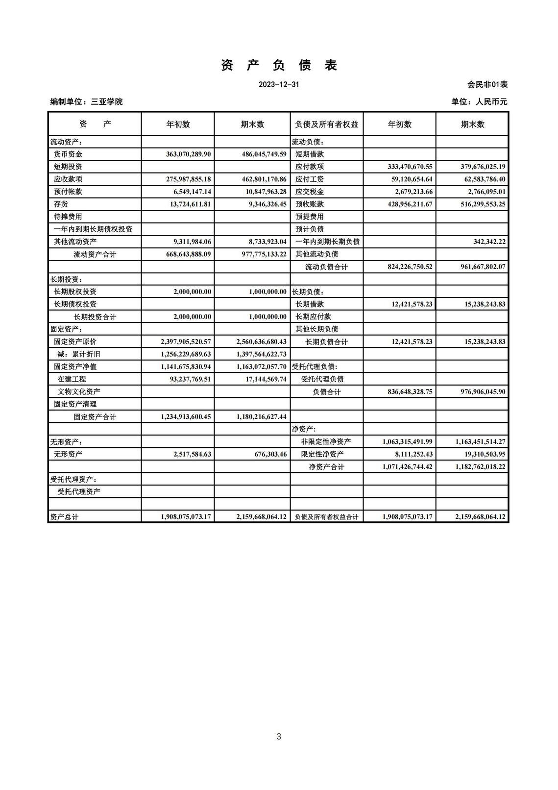 三亞學院2023年財務(wù)預算、決算